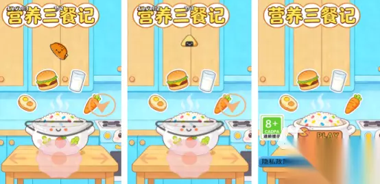 采用经典找不同机制,涵盖大量原创场景关卡,难度梯度设计合理。初级关卡要求识别3处差异,高阶关卡则提升至10处差异点。每组对比图由上方原图与下方变异图构成,玩家通过点击定位差异位置,考验观察力与细节捕捉能力,适合全年龄段用户锻炼专注力。 高速下载 普通下载 优先233乐园APP下载 3、《营养三餐记》