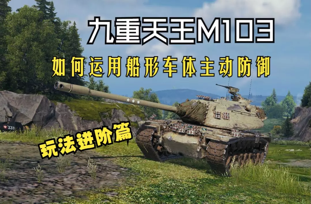 这是《坦克世界》的相关内容,介绍M103这款9级重坦,称它是9级最强输出重坦,展示了它的外观、配置属性,包括火力、防护等数据,还呈现了它的实战画面,提及它的优缺点。