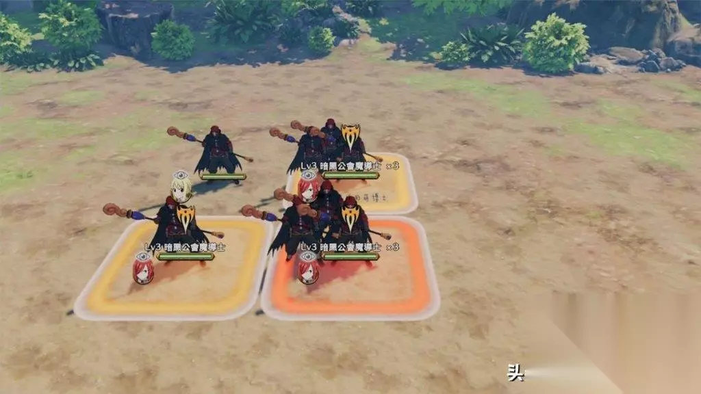 游戏的战斗系统采用了介于战棋和回合制之间的模式,这在市面上比较罕见。敌人以九宫格形式分布在场上,玩家需要使用各种攻击、魔法和道具来与之战斗。不同的技能拥有不同的影响范围,例如,灭龙魔导士们的咆哮技能基本上都是直线攻击。当然,越强大的招式通常范围也越大,后期还会有强大的觉醒技能可供使用。