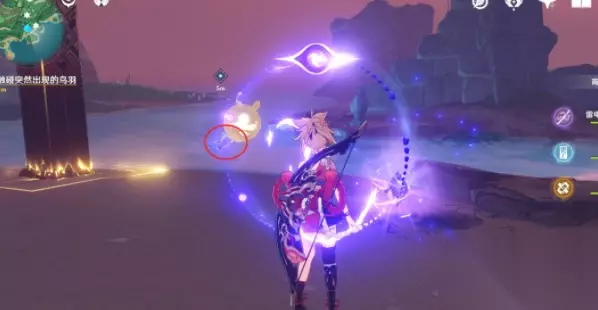 还会降下红色的雷。 经历过一系列对话,阿釜决定与我们一同前行,我们这次要去不打雷的地方。 跟着指引走,第一个地方的雷鸟雕像,用羽毛照一下。