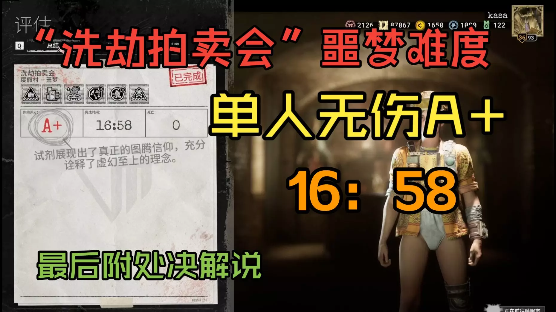 这是《逃生:试炼》孤儿院地图净化孤儿关卡的高难度跑酷挑战,为噩梦难度单人无伤A+评分的五禁玩法,额外叠加了多重增难变量,提升了敌人、陷阱数量,缩减了资源与倒地容错,挑战难度极高。