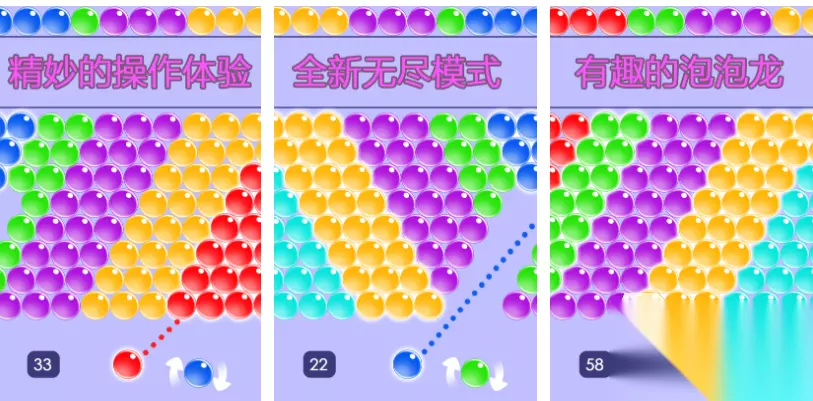 泡泡龙2022是款具备多种多样关卡的休闲消除类游戏,消除任务超多带来的泡泡龙闯关体验更精彩,娱乐性与休闲感并存让泡泡龙爱好者心驰神往,每一关呈现的泡泡排列都显得与众不同,清脆的消除泡泡音效加持带来了不俗的沉浸感,发射泡泡的次数有限必须在限定时间内消除所有目标。 高速下载 普通下载 优先233乐园APP下载 5、《无尽泡泡龙》