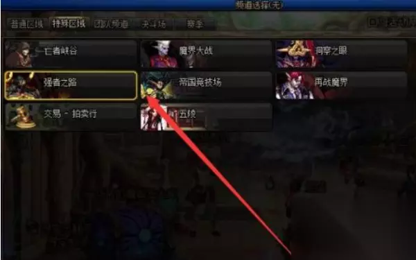2、选择频道:特殊区域---强者之路。由于普通奖励和匹配奖励每周各只有一次,所以人数不会太多。
