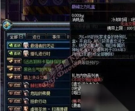dnf是一款经典的横版2d角色扮演类游戏,游戏里面的道具材料有很多,一些礼盒里面的奖励是很丰富的,一些礼盒是比较多玩家需要的,比如巅峰之力礼盒,这个礼盒里面的奖励很丰富,有一些玩家不清楚怎么获得,那么下面小编就带给大家dnf巅峰之力礼盒获得方法介绍。