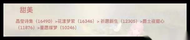一、典雅风格套装推荐: 以下套装按照评分从高到低排序:辉月诺言 (16503) > 天鹅童话 (15852) > 心愿金蔷薇 (13699) > 清爽茶会时 (11653) > 利落仪表 (9596) > 纯净之风 (9318) > 即兴野餐 (9236) 三、甜美风格套装推荐: 以下套装按照评分从高到低排序:晶莹诗集 (16490) > 花漾梦萦 (16346) > 祈愿新生 (12305) > 爵士夜甜心 (11876) > 星愿璨梦 (10246)