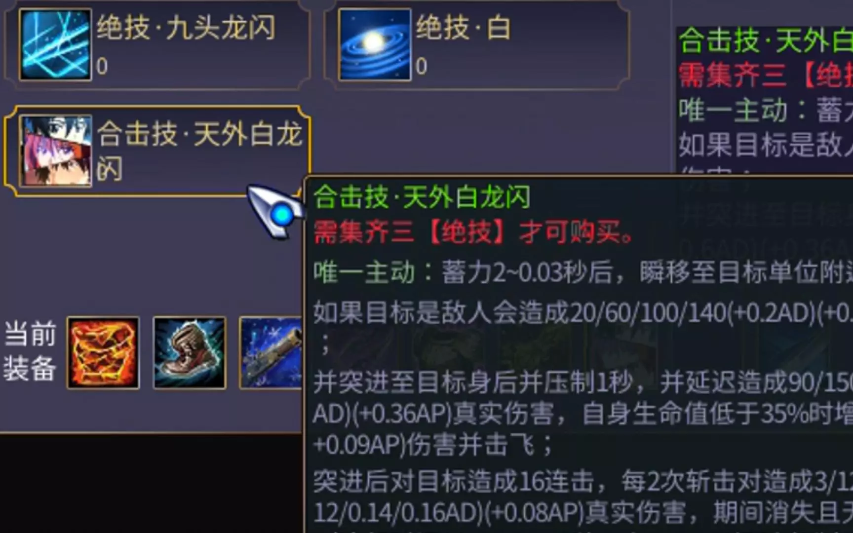 300英雄玩法资讯 需要集齐三个绝技 天外飞仙 九头龙闪跟白以后才能解锁 视频里是红色卡片还选择了涌动CD 导致技能CD非常短 可以玩大招流 同时带天外白龙闪 …