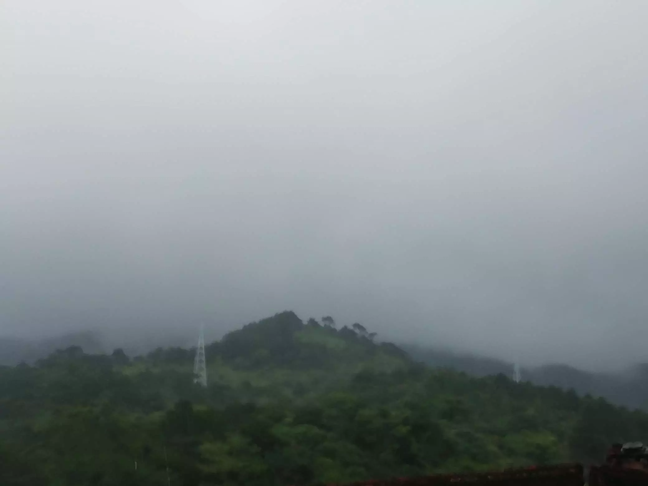 雨雾漫山,绿意间的朦胧山海意