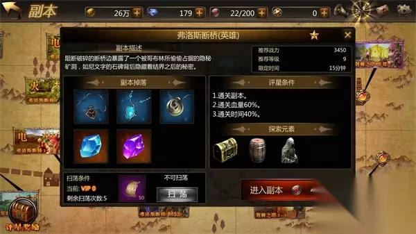 好了,前戏结束,我们正式进入到攻关环节! 弗洛斯断桥作为玩家在10级后解锁的第二个英雄副本,要求战斗力至少达到3450,属性上以电和火优先,副本中怪物数量和强度都极大增强,因此小编强烈建议各位玩家解锁副本后,先继续故事主线到11级,解锁新功能武器缘分系统后会更有胜算哦!