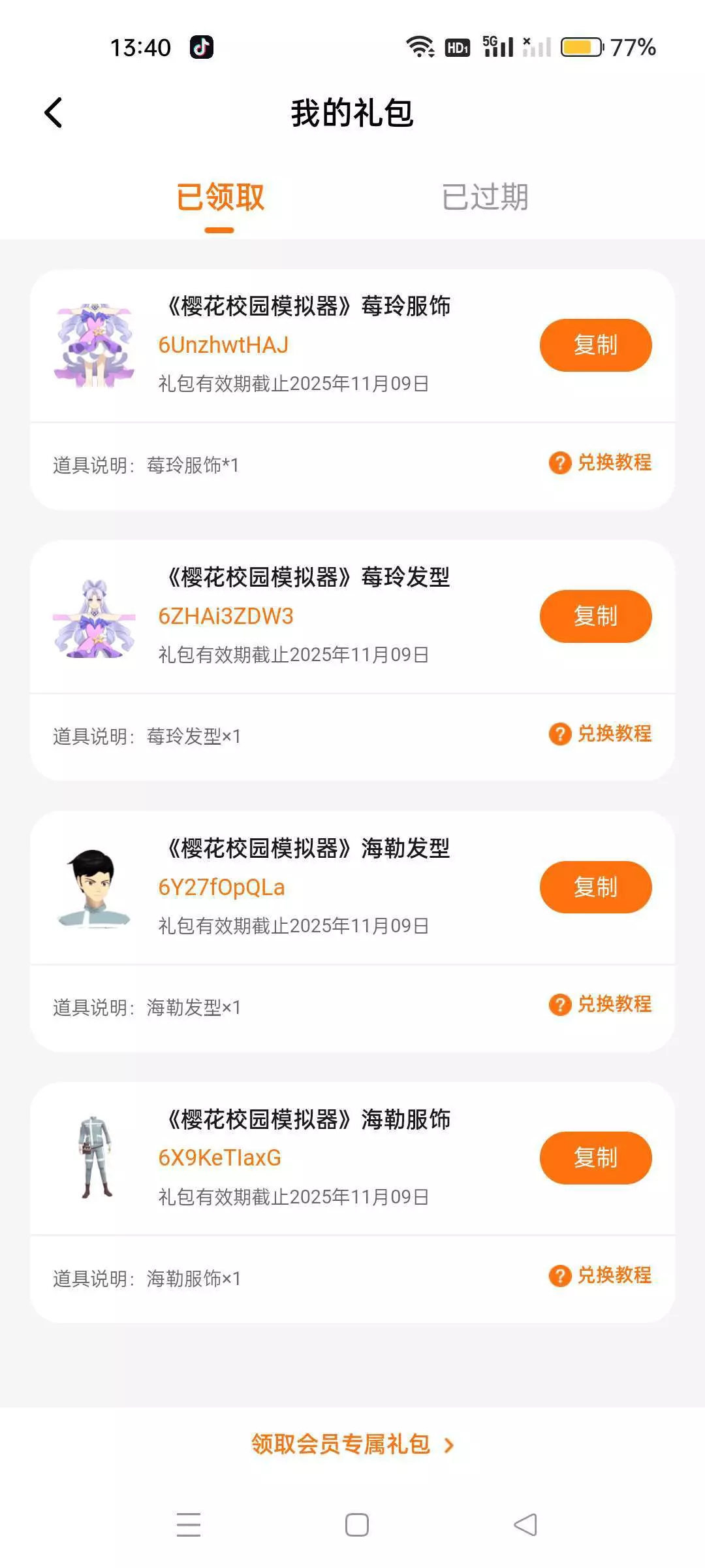 兑换码来了。