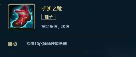 【英雄联盟装备大全】 英雄联盟明朗之靴属性、合成、效果介绍 在前期的减CD装备中收益比较大的 基础属性 总价:900金币 合成路线:鞋子+600金币 移速:45 技能急速:15 特效 提供10召唤师技能急速 合成 鞋子+600金币