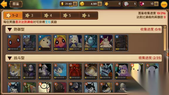 在这里我们可以很清楚地了解到这些数据: 1,游戏总共有296个英雄 2,英雄的星级从低到高,一共六个星级 3,英雄的类别分为:防御型、战斗型、暗杀型、辅助型、治疗型五大类 4,在每一个类别中都分布着1-6星英雄