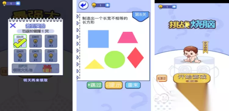 如果喜欢休闲类型的游戏,那就可以进入到全民脑力挑战,里面会设置很多的关卡,每一个关卡里都会给出一幅图案,同时还会给出解密的要求,想要顺利的解开谜题,就需要利用逆向思维,随着不断闯关,玩家的思维能力能得到锻炼,闯关的速度也会变得更快,画面都是简单的手绘风格,可以在闯关的过程中放松自己。 高速下载 普通下载 10、《挑战烧脑》