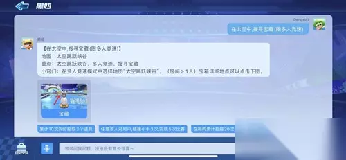 跑跑卡丁车手游在太空中搜寻宝藏怎么完成?在太空中搜寻宝藏完成攻略。我们可以提前从黑妞那里了解到下一周的挑战任务,其中的宝藏任务是在太空中搜寻宝藏,不少玩家都想知道在太空中搜寻宝藏位置在哪,下面233乐园小编为玩家们带来了在太空中搜寻宝藏位置介绍攻略。