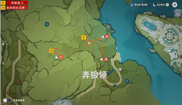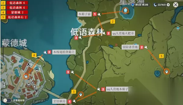 2、在低语森林有三个苹果,在蒙德城有一个苹果。