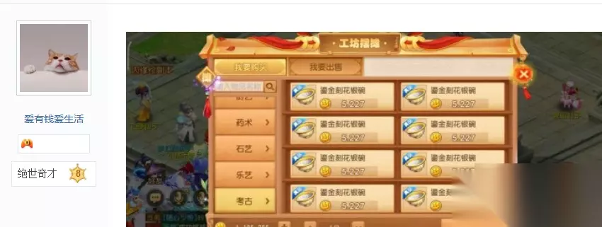近日有玩家在工坊摆摊商城中发现鎏金刻花银碗最便宜的只卖2874金币,这样低的价格让他起了赚差价的小心思,大家都知道真品古董可以直接在洛阳杂货商人处出售换取银币,而像鎏金刻花银碗可以直接卖出75W银币。如果花2800金币就能从工坊摆摊里买到鎏金刻花银碗,然后再去换银币,这中间的差价可以赚不少,该玩家直言这个方法比自己去考古赚的还多。