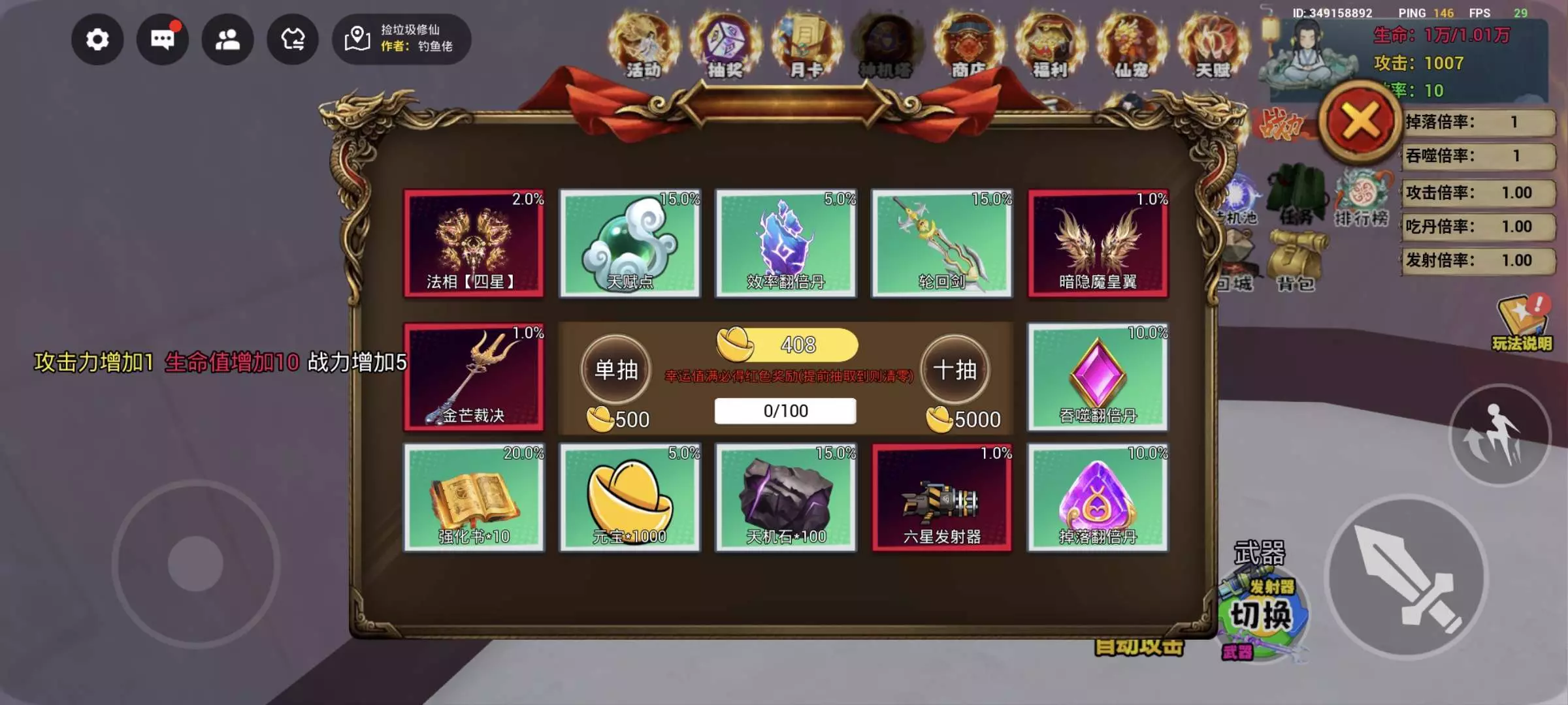 666小号一发就抽中了六星发射器