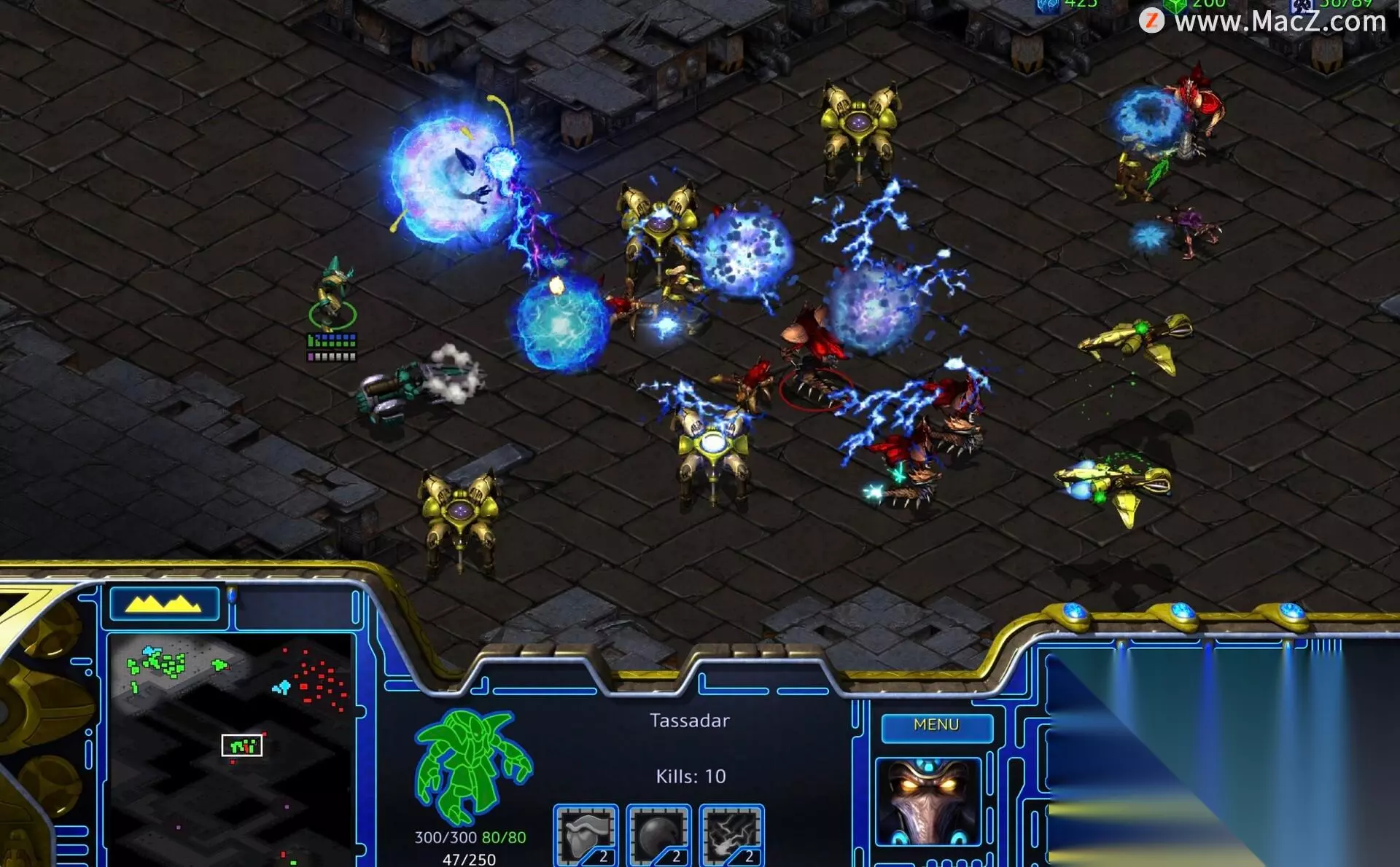 星际争霸母巢之战 for Mac是由暴雪娱乐和Saffire研发的即时战略游戏《星际争霸》的资料片。剧情紧接着原版的第三章,以三个战役的方式进行,最终刀锋女王凯丽带领虫族夺取了星区内的胜利。与原作相同,《母巢之战》的战役也分为三个部分,对应三个种族。不过时间线顺序上有一定变更。虽然战役有时间线划分,但是并不需要玩家去解锁。玩家可以从任意一部分战役开始,并且自动保存已经通过的关卡进度。