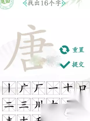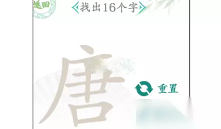 3、玩家只需要将上面的所有汉字都找出来就可以了。 以上就是小编为大家带来的《汉字找茬王》唐找出16个字攻略详解的全部内容,还想了解更多关于汉字找茬王攻略的小伙伴就来233乐园攻略看看吧!看完你就知道了,希望能对大家有所帮助。