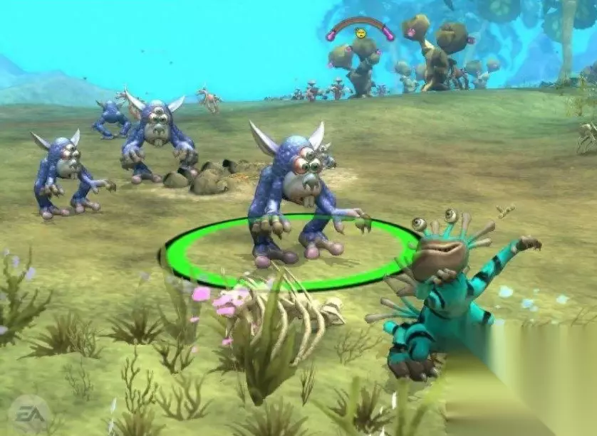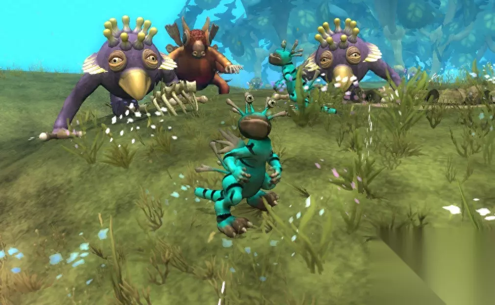 在水中进化完毕后,玩家所扮演的角色将从水生变为陆生,并在新的土地上开拓自己的征程。这一幕实际上与原始时期地球生物的成长方向相同。可以说威尔老先生在这一方面仍然尊重了生物发展的历程,但在这进化的过程中还是加入了自己以及整个创作组的天马行空的思维,也让玩家从另一种角度感受了物种进化的过程。
