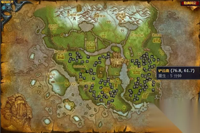 任务目标: 天然铲齿鹿皮 坐标(76.8,61.7)