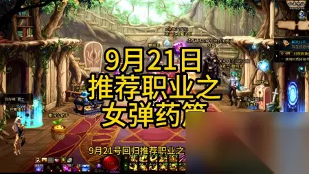 推荐职业——女弹药篇,将于9月21日更新。 9月21日回归,推荐职业——女弹药篇。提前准备一个50级以上的女弹药角色,在更新后可领取一个快递礼盒,直升满级并达到4万名望。女弹药是固伤职业,打造要求低,爆发伤害高,技能倾泻速度快,上手难度低。