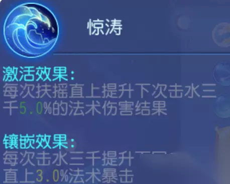 镶嵌优先级:均可镶嵌 解析:这两个经脉点只能选一个,骇浪是对于大招进行加成,鹏举则是对于单秒进行加成