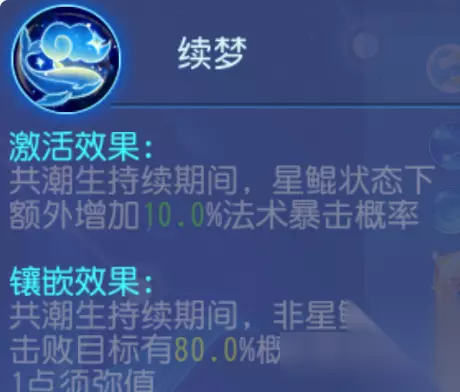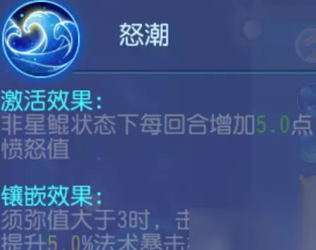 镶嵌优先级:一般 解析:提高了单秒经脉开共潮生的优先级,既能增加大招暴击又能快速获取须弥值
