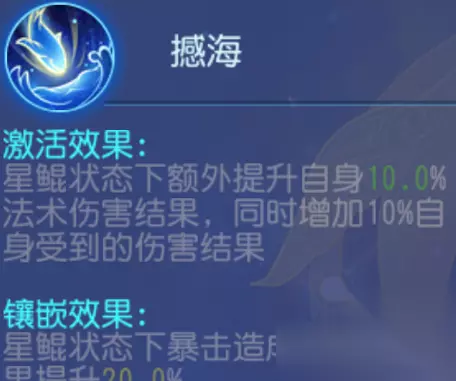 镶嵌优先级:均可镶嵌 解析:这三个经脉点只能选一个,怒潮增加了群秒路线的愤怒获取,也进一步加强群秒经脉,鲲息则是增加须弥海的生存能力,撼海则是对于大招进一步加成