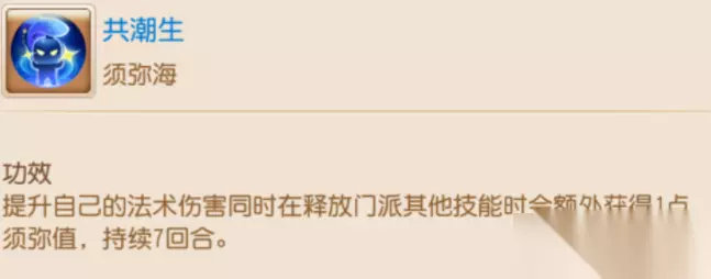 精锐的玩家使用飞流吟,朔风斩和共潮生这三个技能是无法增加须弥值的。 1-3:须弥海门派法宝 须弥海的门派法宝1层属于基本上没啥效果,3层收益较大。