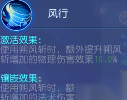 其次是五个处于经脉图案下方的点 镶嵌优先级:均可镶嵌 解析:这两个个经脉点只能选一个,风行是增加释放朔风斩时自己和物理系的收益,惊涛则是对于单秒群秒经常切换的收益进行加成