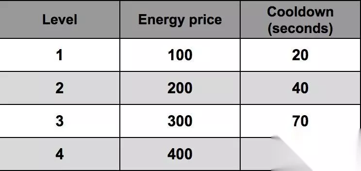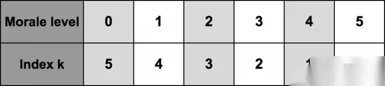 技能的成本和冷却时间取决于能力水平。能力越高,成本越高,冷却时间越长。 两种获取能量的方法 方法一:通过攻击失去你的部队 能量=0.45*k,单位在攻击中死亡,k是你士气的缺乏数量 指数k如下
