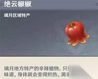 原神绝云椒椒在哪里采集?绝云椒椒是角色突破和制作料理需要用到的素材,相信玩家们对它的需求量都非常大。那话不多说,下面就让我们一起来看看,绝云椒椒都分布在地图上的哪些位置吧! 原神绝云椒椒采集点汇总 在原神中,绝云椒椒是璃月地区特产的辛辣植物,光是闻到味道就可以令身体变得炽热且渴求水分。