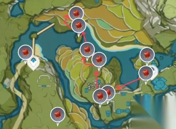 材料用途:主要用于角色突破和制作食物料理 刷新时间:48小时 地点位置: 地点一:轻策庄——数量10株