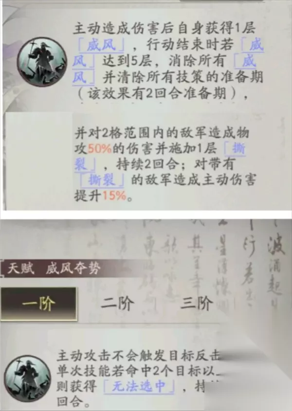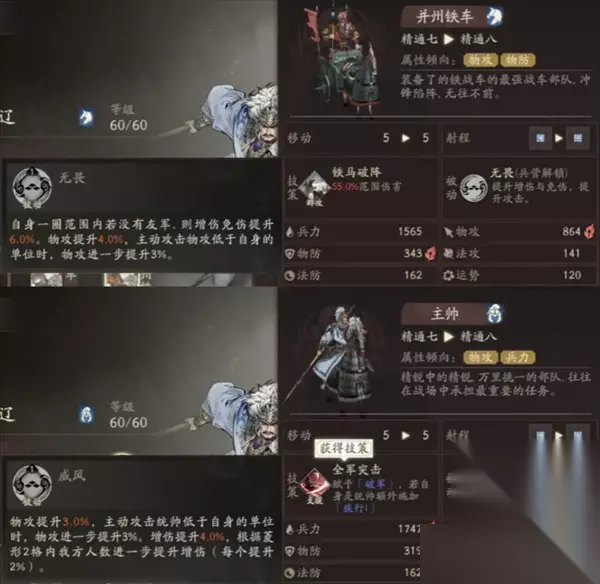 兵种被动触发条件正好相反 技能推荐:根据分支的不同技能选择上也有很大区别。 1.万军取首流:推荐勇者夺前,当锋摧决,铁马破阵。勇者夺前配上当锋摧决保证撕裂的附加效率,以及无视阻挡移动的效果进行超远位移。铁马破阵完美契合天赋的撕裂效果。