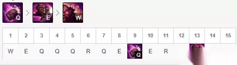 技能加点推荐主Q副E的技能加点,Q技能可以用来减速并且伤害很不错,E技能是位移技能还有一个短暂的击飞效果,抓人效果不错,W减伤,前期点一级就行了。