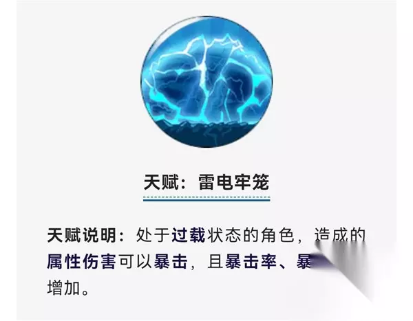 这个天赋可以让过载状态的角色,造成的属性伤害可以暴击,而且暴击率和暴力伤害也会增加,理解起来也比较容易。