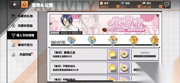 而义理巧克力和恋情巧克力,也可以兑换各种珍惜道具,包括支援凭证、时装兑换券、全属性能量材料等稀有道具,用以提升角色实力。此外,情人节特惠礼包也已上架,购买特惠礼包可以获赠大量巧克力道具,为部分没有时间任务的玩家解除后顾之忧。 除了以上情人节专属活动外,月度历练等福利活动也还在继续进行中。玩家可以在参与情人节专属活动同时解锁多重福利,为自己在这个特殊的2月,留下一段美好回忆。