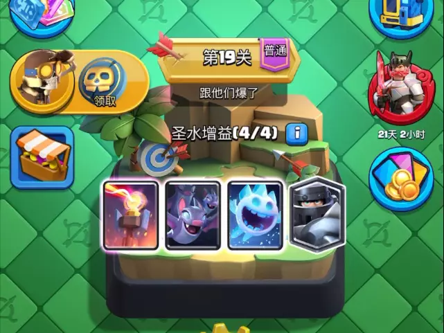 这是策略游戏皇室战争的通关内容,展示了保卫国王第18关火焰山的关卡界面,该关卡为普通难度,有圣水增益效果,还呈现了可用卡牌与对战界面,实现了6圣水25秒速通该关卡。