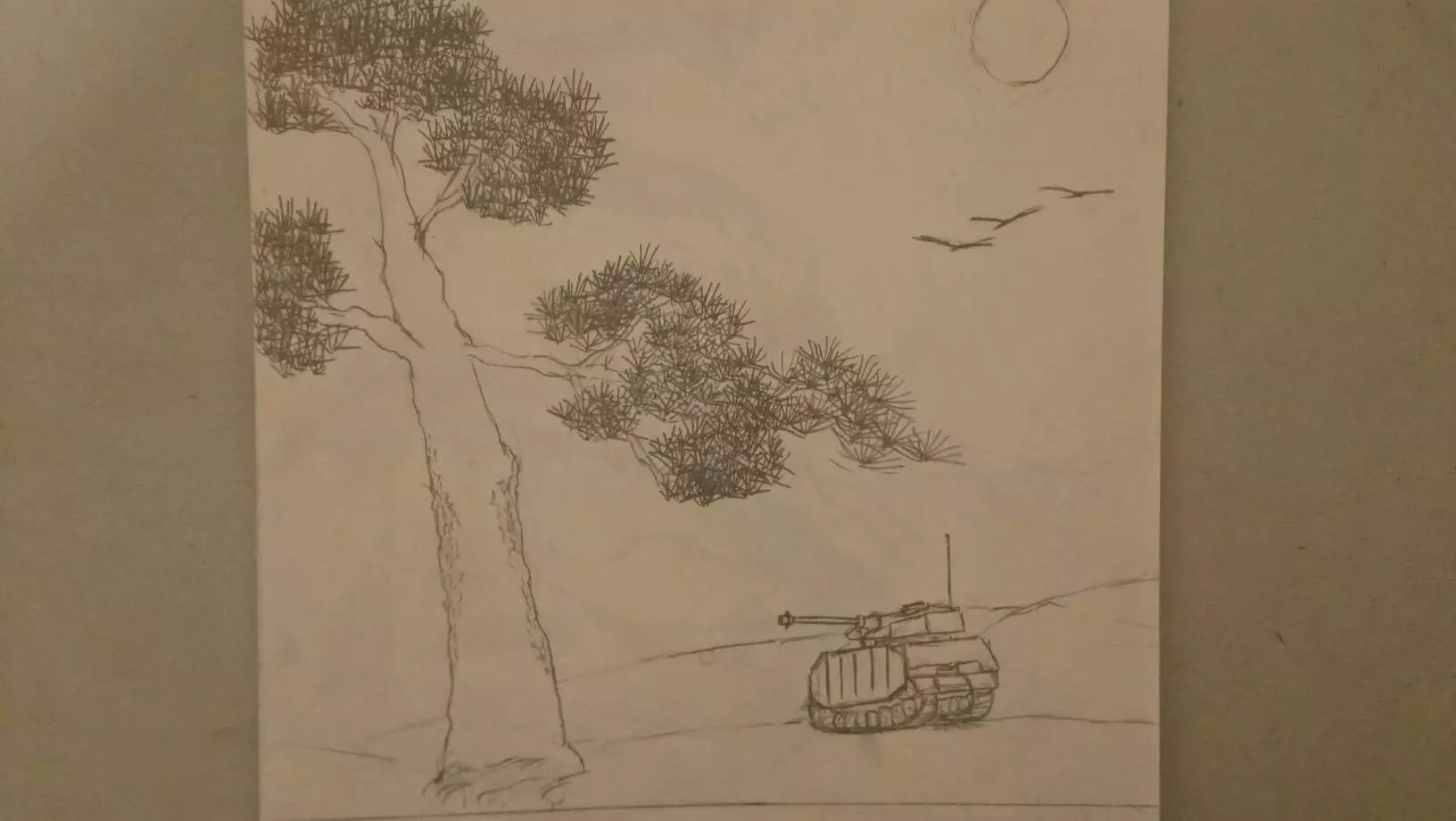 夕阳之下 松针树