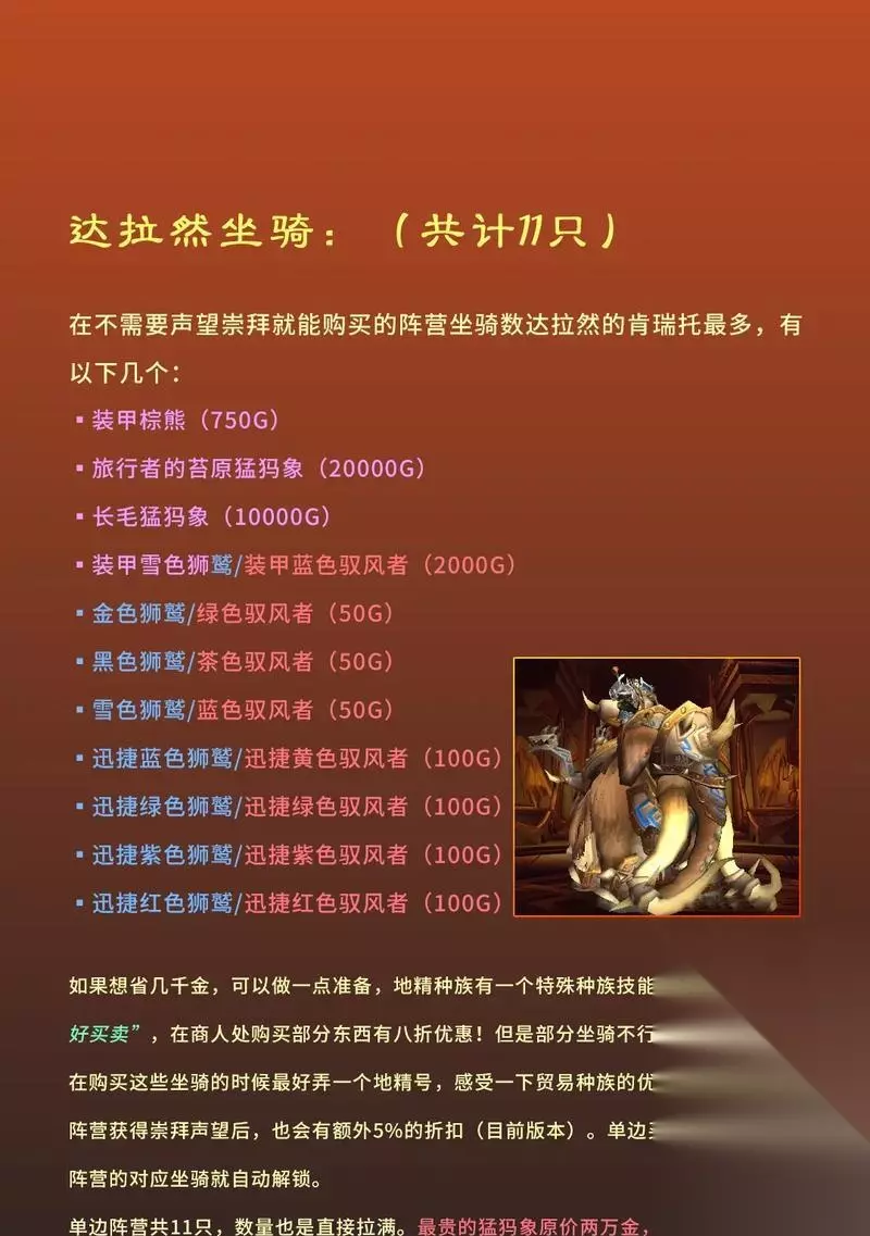 一、坐骑共享机制的出现背景 《魔兽世界》是一款长寿的游戏,已经陪伴玩家十多年。为了让老玩家体验更多的乐趣,同时吸引新玩家加入,游戏公司不断推陈出新,更新内容。坐骑共享机制就是其中之一。 二、坐骑共享机制如何实现 坐骑共享机制的实现需要玩家把获得的坐骑绑定到账号上,即一次性获得该账户下所有角色可以使用该坐骑。这个过程需要花费一定的游戏金币和学习材料。 三、坐骑共享机制的意义 坐骑共享机制的意义在于,玩家不用为每个角色都重新获得同一个坐骑,这样可以节省时间和游戏金币。对于有多个角色的老玩家来说,坐骑共享机制可以省去很多繁琐的操作。 四、坐骑共享机制的影响 坐骑共享机制的出现,使得一些珍稀坐骑的价值大大降低。原本只有少数人能拥有的坐骑,现在可以被所有人使用,这对于收藏家来说是一种打击。而且,坐骑共享机制也让游戏的难度降低了。 五、坐骑共享对游戏体验的影响 对于新手玩家来说,坐骑共享机制可以让他们更快地适应游戏,省去了重新获得坐骑的时间和金币。但是对于老玩家来说,坐骑共享机制却让游戏变得过于简单。这样会让游戏失去挑战性和乐趣。