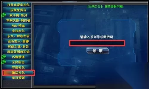 3、点击【激活礼包】字符选项之后,在输入框输入兑换码。
