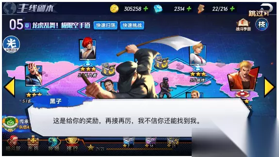 4.人物彩蛋:比如下图这个,在5.4和5.5中间下方有一个警察一样的怪物,点击之后可以获取3个钻石招募令,这种彩蛋比较显眼,但是很多玩家都会忽略掉。另外还有游戏中其他格斗家的彩蛋,总之可以获取大量的雅典娜碎片,非常的舒服。