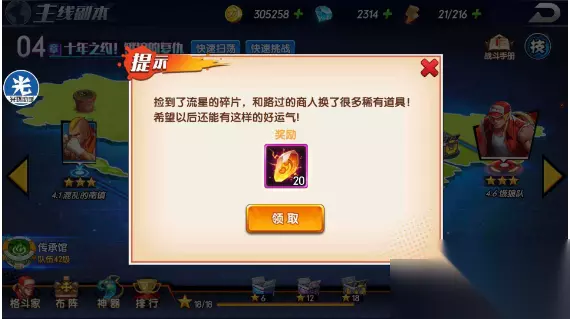 2.流星彩蛋:当我们进入某个章节的地图的时候可以看到上方会有白光降落到地上,这就是流星彩蛋,点击之后可以获得20个能量石。如果没有看到流星的落地也没关系,仔细观察地图中白色的光点就能找到流星彩蛋了。