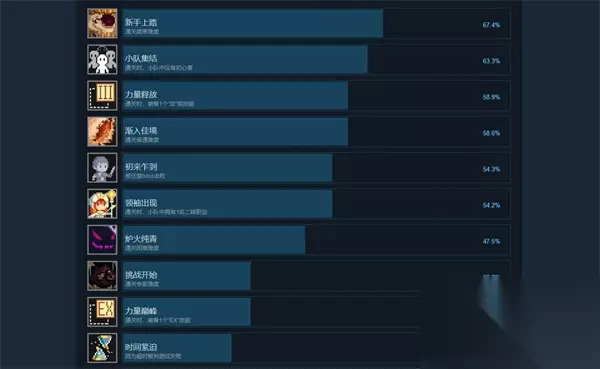 玩家在时行者黑暗世界这款游戏的游玩过程当中除了能够享受游戏本身的乐趣之外,还能够在完成一定的条件的情况下解锁游戏当中的成就,有些玩家就对这些成就比较好奇,想知道游戏中有哪些成就。 时行者黑暗世界成就一览 1、新手上路 通关简单难度。 2、小队集结 通关时,小队中没有初心者。 3、力量释放 通关时,装备1个「Ⅲ」级技能。 4、渐入佳境 通关普通难度。 5、初来乍到 被任意boss击败。 6、领袖出现 通关时,小队中拥有1名二转职业。 7、炉火纯青 通关困难难度。