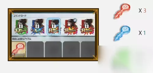 然后讲一下纹章的刻印方法: FGO中每一个从者都有5张配合,而纹章就是刻印在这5张卡上,赋予这些配合额外的效果。(每一张卡都可以刻印一个纹章) 所以一个从者刻印满纹章应该是需要5个纹章的,每一个纹章刻印前都需要用对应颜色的钥匙解锁刻槽。