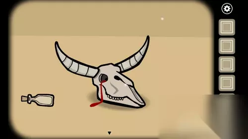 2.调查左侧的牛头,将草给牛头吃,然后拾取左边的瓶子装血:
