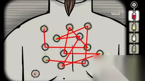15.调查躺在床上的人,身上的点按下图所示全部按下,然后用小刀划开皮肤得到心脏。过关图如下: