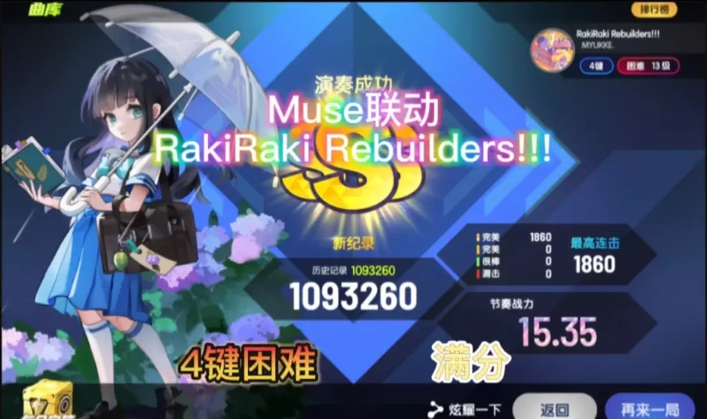 也算个中规中矩的13级歌了。就是谱面写的有点抽象,容易被骗手,不过凹了几次就拿下了