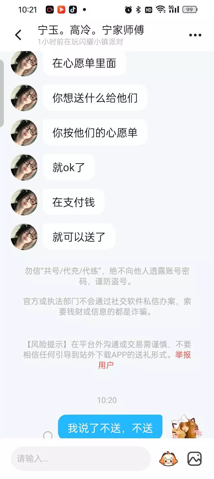 说了不送不送能不能不要来烦我了就那几块钱的东西你不能自己买吗不能自己挣钱吗