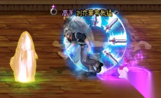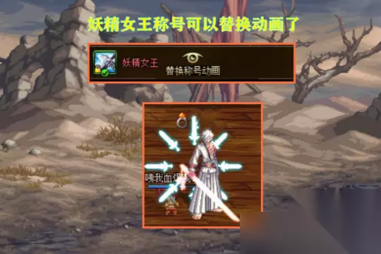 但进入110级版本,眼尖的玩家发现,“妖精女王”称号解除了限制,可以替换动画了。如图所示的红眼,就替换了“妖精女王”称号,确实非常帅气,8把剑在背后旋转。